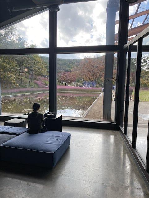 실내로 들어가서 바깥을 바라본 모습~
