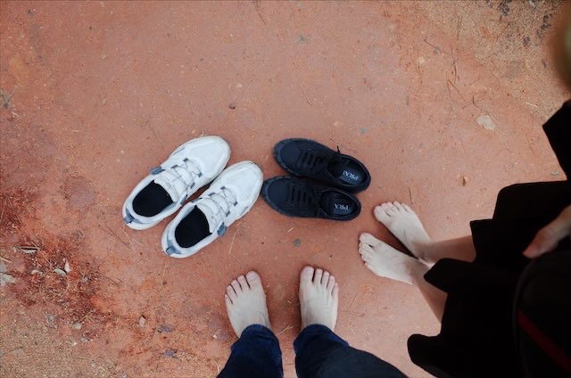 무작정 신발을 벗고 맨발로 사람들 가는 방향으로 따라가 본다