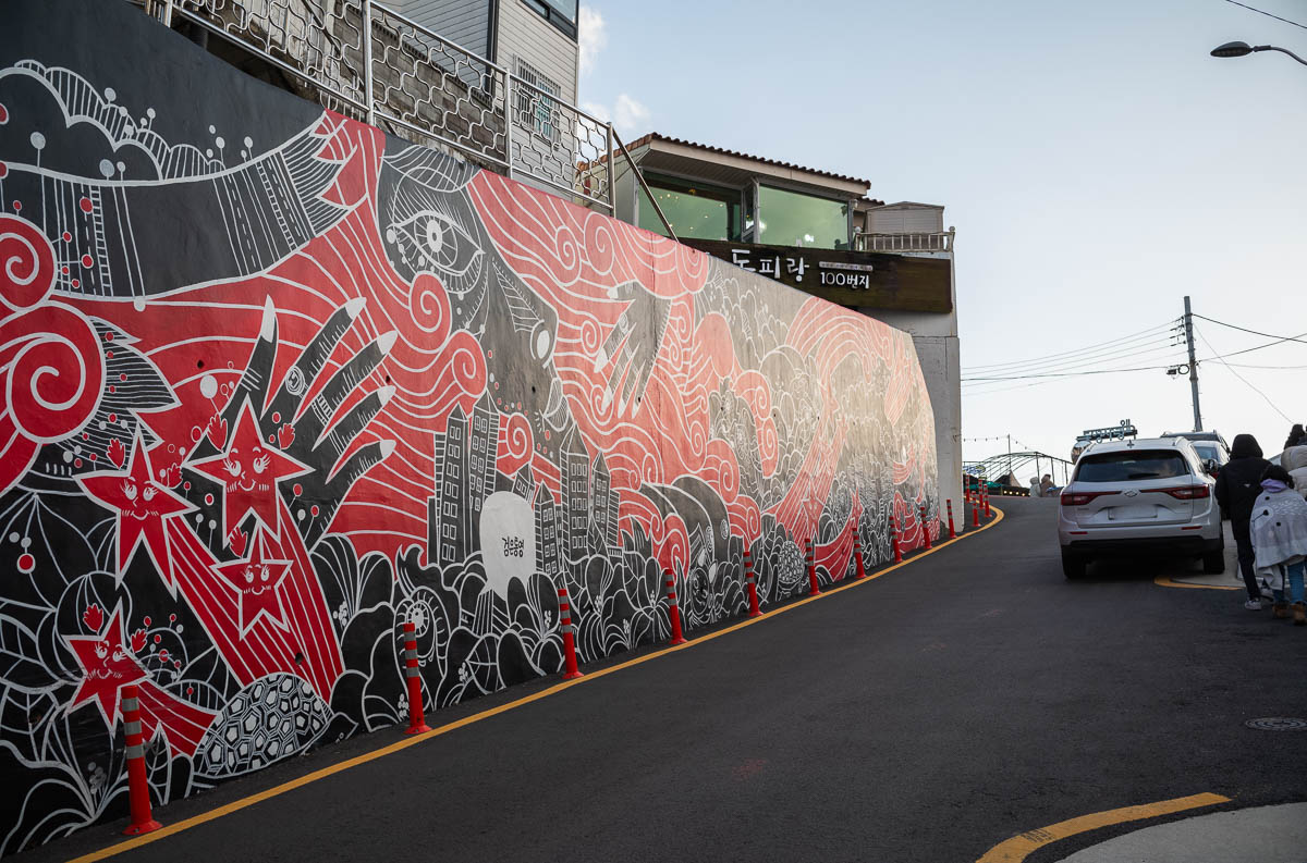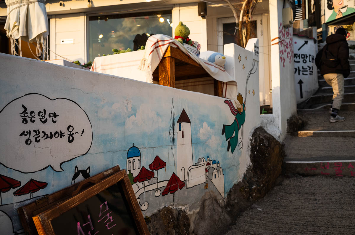 동피랑 벽화마을은 알록달록한 벽화로 가득한
