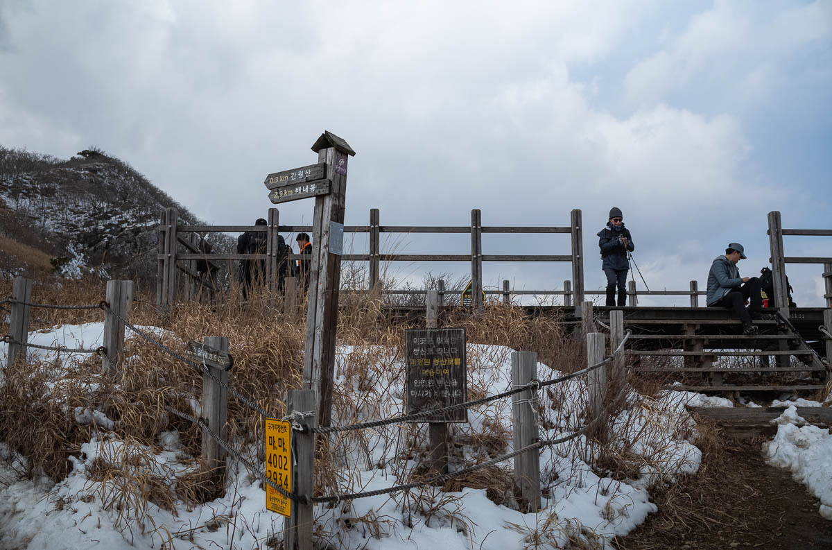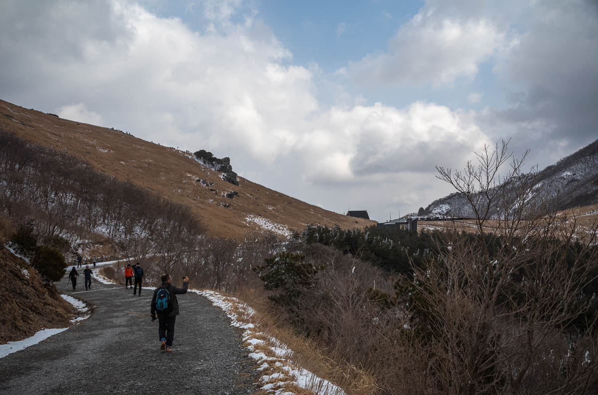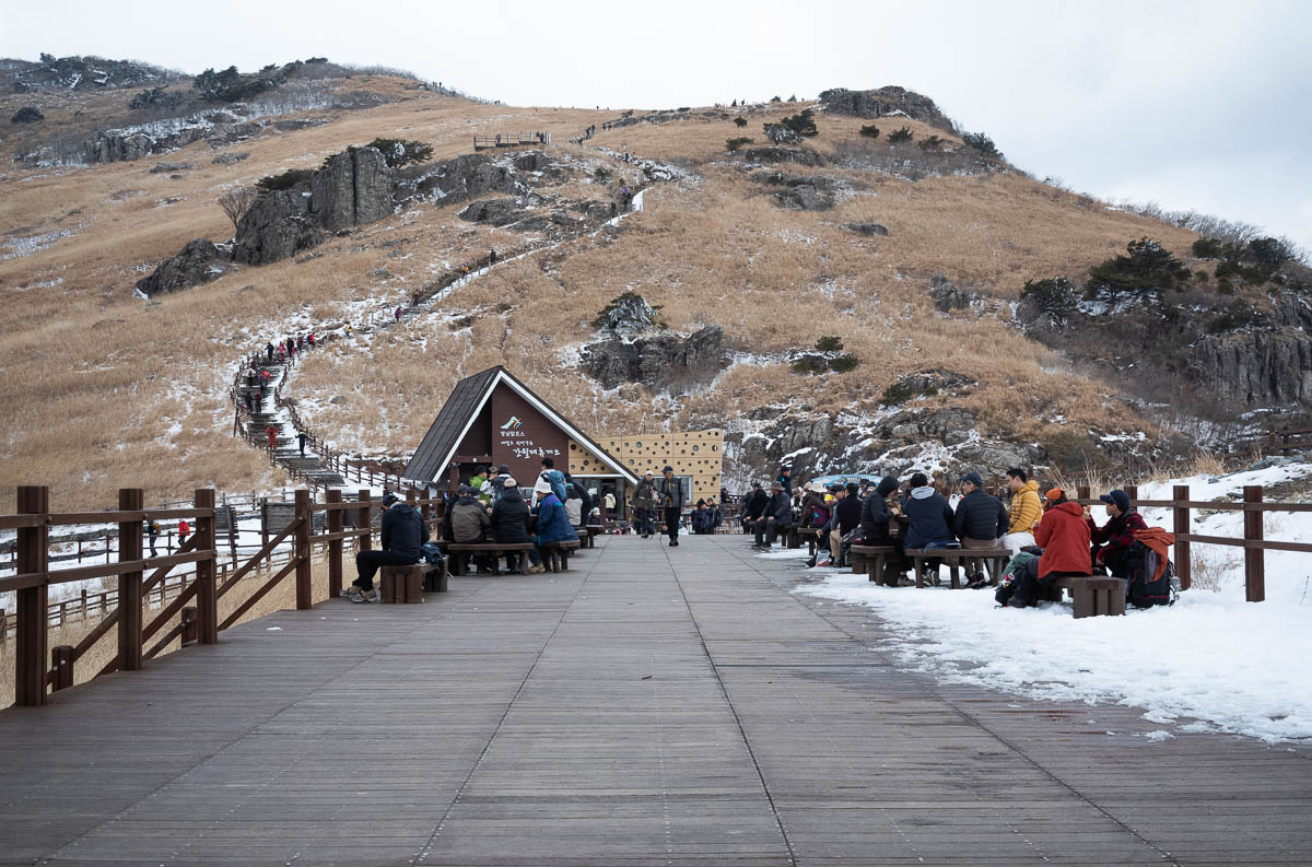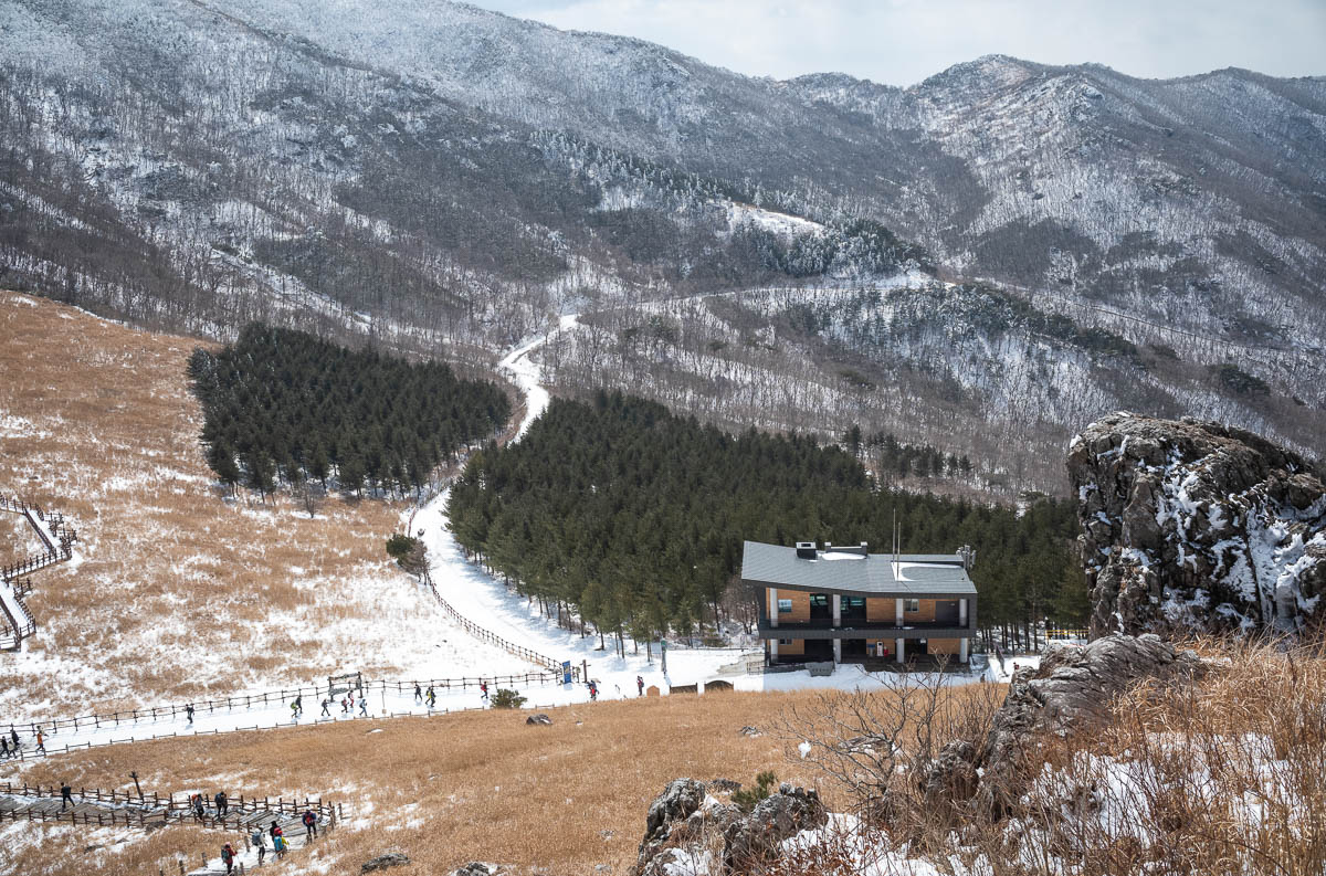간월재 휴게소 너머로 간월산 정상으로 가는 길이 보인다